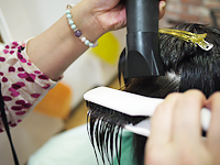 当店では、アイロンではなくブラシを使用して縮毛強制を行います。